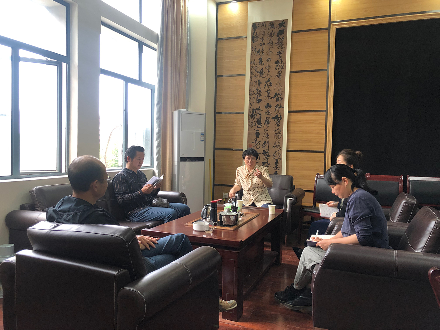 5月22日上午,伟德国际victor1946纪委李昱书记、纪委办袁向荣主任到伟的国际1946bv调研指导。李书记一行首先走访了解伟的国际1946bv开学以来各项工作安排、执行情况,尤其是疫情防控的落实、迎接学生返校准备工作进展情况。详细询问伟的国际1946bv是否有家在疫情高风险区的毕业班学生?相关的预案是否做好?然后到书法研究中心查看伟的国际1946bv2019年教学考核材料、本科教学审核评估材料,充分肯定美设院教学及各项工作取得的成绩。在与美设院党政领导班子座谈时,李书记强调,要继续通过团结协作发挥班子的凝聚力、战斗力,严格按照程序进行决策并做好相关记录;要继续加强党风廉政建设;打好“三大攻坚战”,需要科研方面也打开新局面。