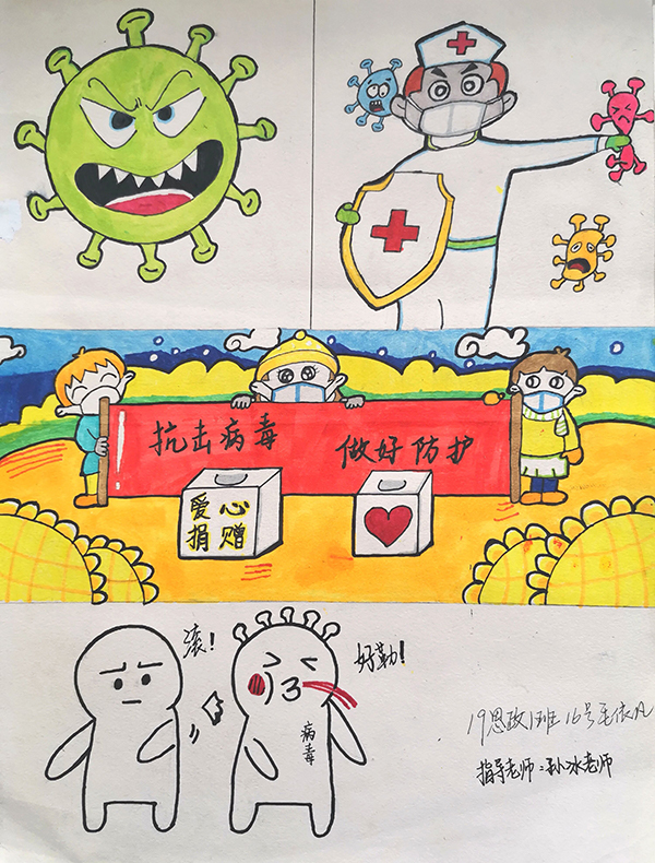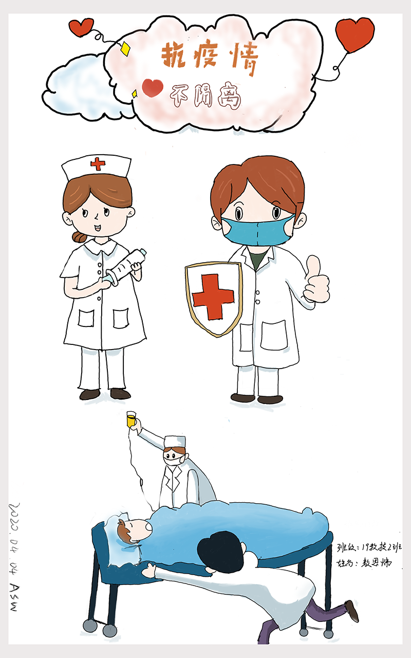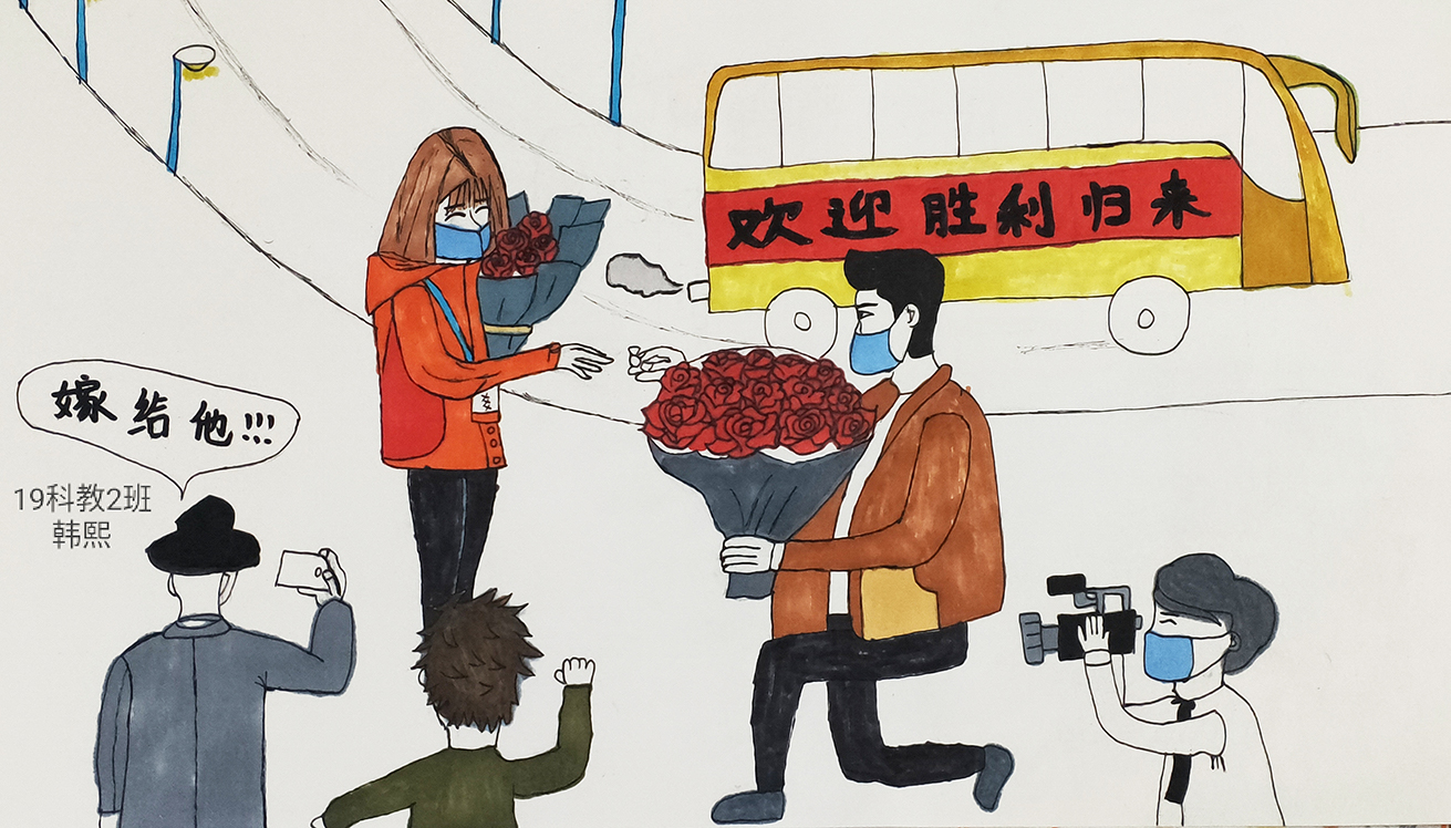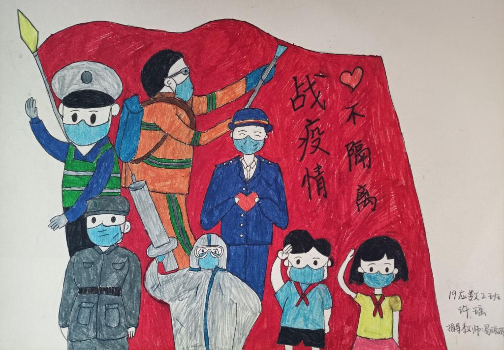 根据教育部与学校“停课不停学,停课不停教”的号召与要求,伟的国际1946bv《美术基础》课程组教学团队结合线上教学情况,思考教学内容与课程思政,探究课堂在社会教育中的育人功能,共同开展了以“战疫情·爱不隔离”为主题的简笔画创作活动,组织学生以简笔画的形式描绘抗疫期间的个人思考与感悟,绘制出内心的关怀和感动,表达爱国情怀,引领学生树立正确价值观,激励青年一代“不忘初心、牢记使命”。