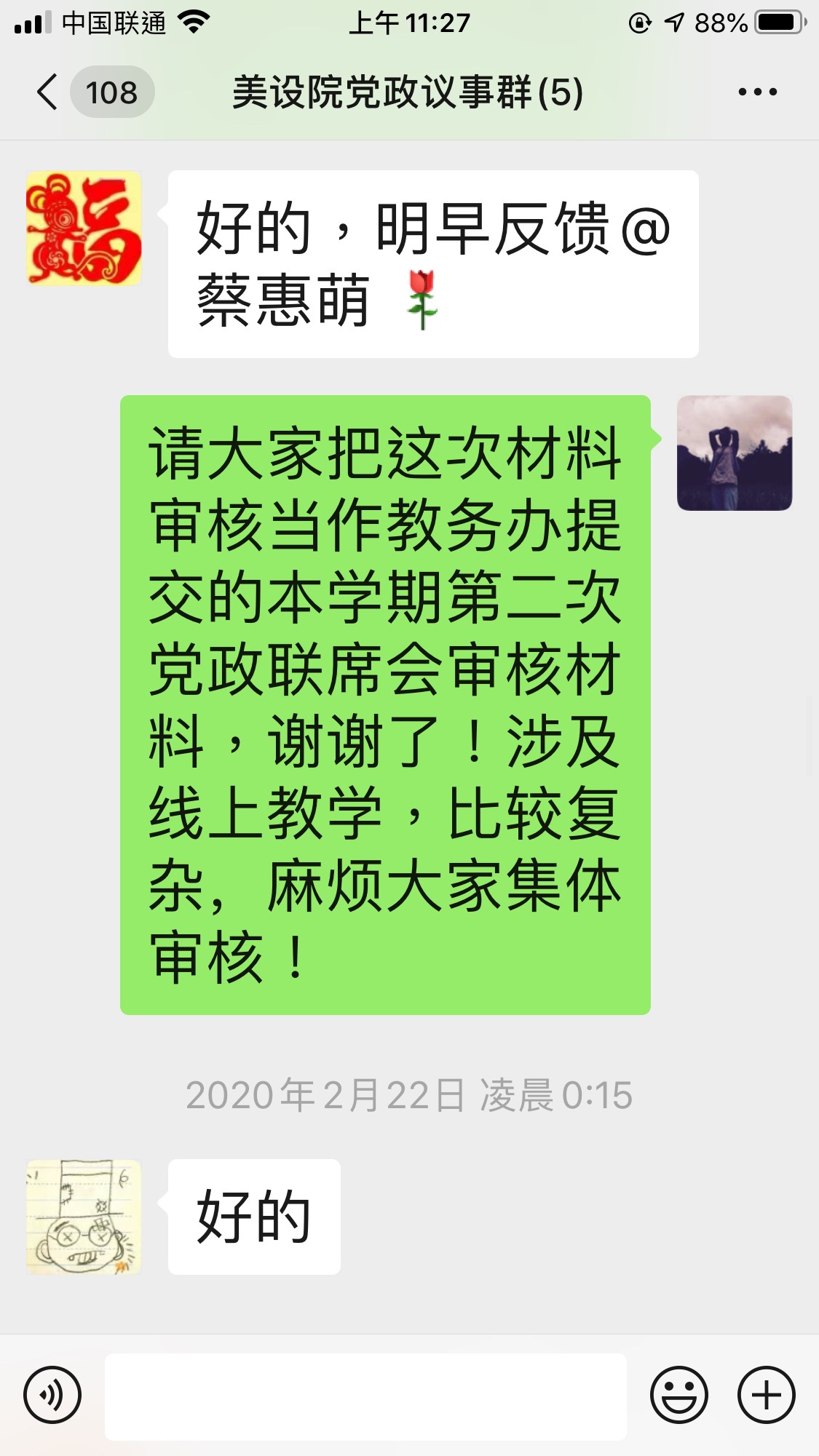 根据《伟的国际1946bv疫情防控期间在线教学与组织管理工作方案》等文件的相关要求,院教务办多次召开小型会议,商讨线上教学的实施细节。在教科办主任谭昕老师的细心组织之下,线上教学各项工作有条不紊,顺利开展,教科办其他老师尽职尽责,确保学院各项工作有序开展,高效完成。2月28日下午,本学期第一次线上教学工作会议,在腾讯会议室的云上办公地点,各教研室主任、教务办全体老师进行了热烈的讨论,对线上教学工作的实施细节、近期各部门各项工作等进行深入交流。将形成的提案交学院党政联席会审核,最终形成文件发到学院微信群,让每一位老师清楚地知晓线上教学工作开展的细节,并在学院网站刊发新闻稿。我院教务办严谨认真、高效细致的工作多次得到相关部门的表杨。