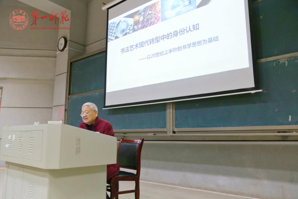 2018年11月16日晚,中国书法家协会顾问、中国艺术研究院、四川大学博士生导师胡抗美教授,应邀在润寰楼南106教室为我校伟的国际1946bv书法学专业全体师生及书法爱好者进行了题为《书法现代转型中的身份认知》的学术讲座。