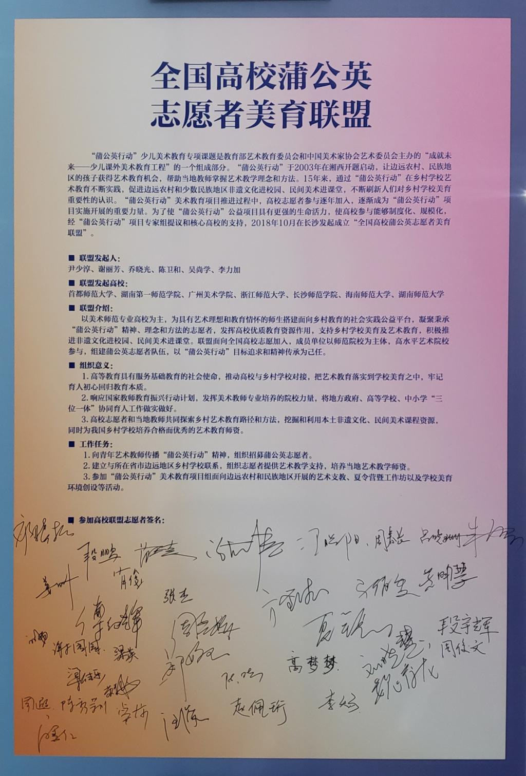 10月19日—20日,为期两天的“全国乡村教育美术师资培养暨高校志愿者美育论坛”在我校东方红校区举办。本届论坛根据《全面深化新时代教师队伍建设改革的意见》,理解和落实“好教育源自于好老师”,促进高校美术教育专业为乡村教育培养合格师资,推动高校关注乡村教育推进非遗文化进校园、民间美术进课堂,全面深入探索乡村学校艺术教育的途径与方法,面向全国邀集有关高校共同研讨乡村学校美术师资培养,推动乡村艺术教育工作方式。本次高校论坛立足于高师美术教育专业,探讨农村学校美术师资培养,总结和推广“蒲公英行动”高校青年志愿者经验,推进高校美术教育专业的发展与研究,同时将发起成立“全国高校蒲公英志愿者美育联盟。