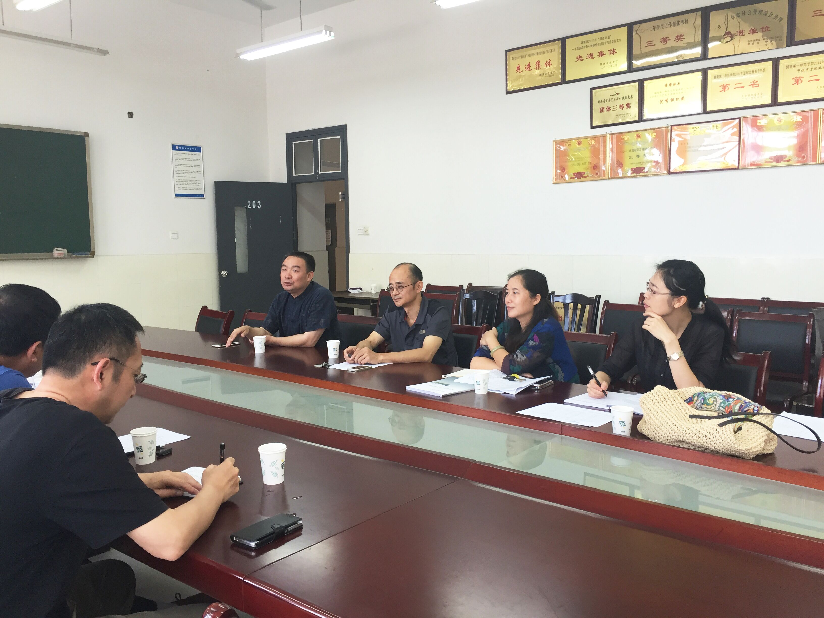 2016年6月16日上午,山西晋中师范高等专科学校艺术系美术主任、副教授孙瑞忠,书法专业带头人、副教授吴来龙,美术教育专业带头人田津,艺术系综合科科长、书法教师白鹏来我校就书法学专业培养方案、学科设置、教师配备、实训室建设以及教材征订选用等方面进行互动交流。我院院长范迎春、党总支书记苏美华、副院长曾小红、书法学教研室主任王佳宁、书法学专业教师文佐等参加了会议。