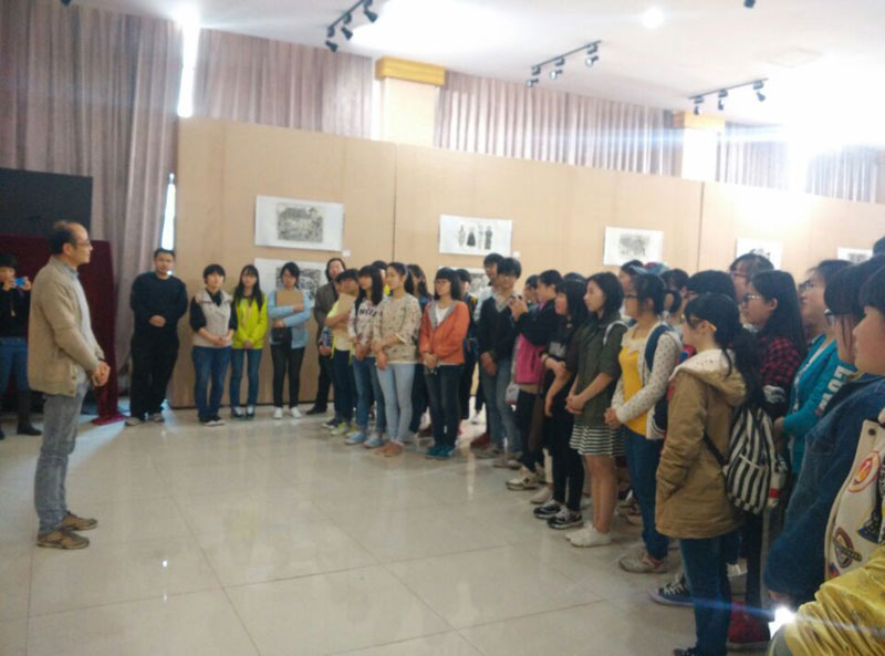 各位领导、专家一起参观展览后,对美术学专业办学中以“教学课程展”开展教学研究与探讨的优良传统,对版画实训室的高效运用给予了充分肯定,并鼓励教师“应该给学生敞开更大的空间去创作”。