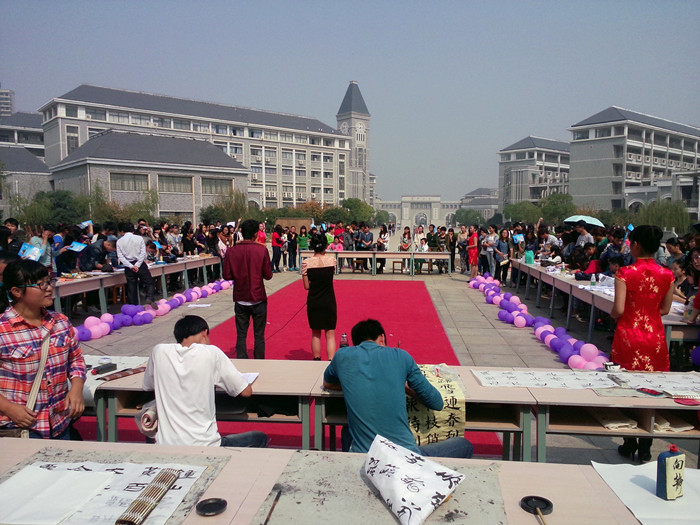 组织观看《毛泽东遗物的故事》,是我系纪念伟人毛泽东诞辰120周年、求学一师100周年的系列活动之一。本学期我系围绕毛泽东诞辰120周年还举办了一系列纪念活动。9月9日,在新生入学教育中,系党总支副书记舒克斌为新生作了《伟人毛泽东求学成才之路》的讲座,帮助学生认识到:成就一代伟人不是偶然的,这是毛泽东自身的艰辛努力和一师范诸多良师的指引培养、益友的相互砥砺的结果。10月16日,系部特邀黑龙江鸡西矿业集团党委宣传部部长、宣传毛泽东思想20余年的毛泽东研究专家陈烈先生作了《学习毛泽东,复兴我中华》的演讲,希望同学们要学习毛泽东的伟大思想和人格,从而实现复兴我中华的伟大梦想。10月24日,在学校第九届青年学习节中,我系以“浓墨重彩一师情”为主题,现场用浓墨重彩,绘一师的景,书主席的诗,表达对母校的热爱、对伟人的崇敬。目前,我系正在认真筹办“纪念伟人毛泽东诞辰120周年、求学一师100周年、一师建校110周年”师生美术作品展,拟展出200多件作品,涵盖绘画、设计、书法、剪纸等多艺术门类,这将给我校“三庆”又添一道美丽的风景。