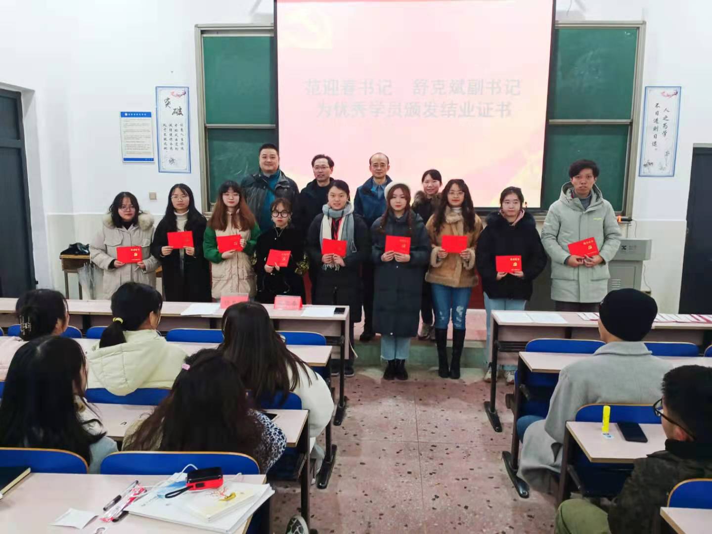 11月13日晚上7点,伟的国际1946bv分党校第25期、26期入党积极分子培训班结业典礼在鹤鸣楼南111教室举行。伟的国际1946bv党总支书记、分党校校长范迎春教授,党总支副书记、分党校副校长舒克斌副教授,学生党支部委员以及第25期、26期共计100名入党积极分子出席了结业典礼。舒克斌副书记进行了培训总结。范迎春书记宣读了表彰入党积极分子优秀学员的决定。两位书记一起为优秀学员颁发证书。入党积极分子们纷纷表示会牢记书记们的嘱托,继续在各方面严格要求自己,深入学习党的理论知识,坚定理想信念,增强党性修养,勤奋学习,不断提高自身的综合素质,以实际行动争取早日入党。