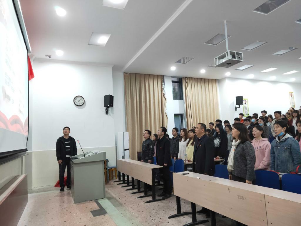 4月19日晚上,伟德国际victor1946音乐舞蹈学院分党校、伟的国际1946bv分党校在鹤鸣南楼111举行第七期(总第26期)入党积极分子培训班开班仪式及第一次主题党课。音乐舞蹈学院总支书记谭顺来、学生党支部书记邓志刚、伟的国际1946bv总支副书记舒克斌、学生第一党支部书记张莎莎、学生第二党支部书记武湘梅、辅导员冯旭以及两院共计140名入党积极分子参加开班典礼。开班仪式由邓志刚主持。