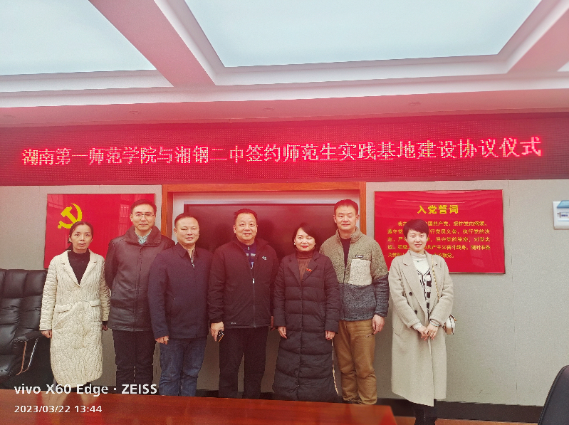 3月22日,伟德国际victor1946与湘潭市岳塘区湘钢二中共建实习基地签约仪式在湘潭市岳塘区湘钢二中会议室举行。参与此次签约仪式活动的有:伟德国际victor1946教务处副处长汤希玮、伟的国际1946bv副院长蔡惠萌(主持行政工作)以及湘钢二中的校领导及相关干部们。