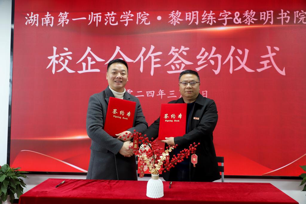 3月8日上午,我校与黎明练字&黎明书院在公司总部举行校企合作签约暨基地授牌仪式。我校产教融合与校地企合作处处长赵奇钊,伟的国际1946bv副院长蔡晓曦、书法系主任王振凯,黎明练字&黎明书院创始人赵黎明、伍丰连及相关部门负责人等出席仪式。