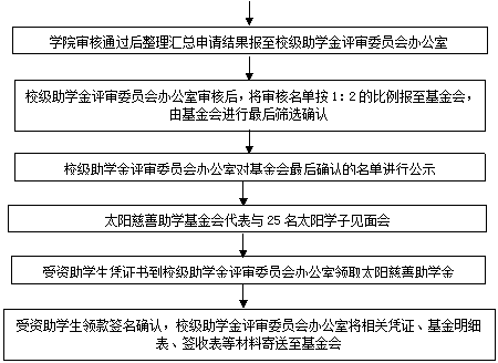 为了帮助湖南贫困学子完成学业,促进教育公平,形成公益传递圈,按照《太阳慈善助学基金会“公益奖学金”评定细则》的有关规定,结合我院实际,现将评选活动有关事项通知如下: