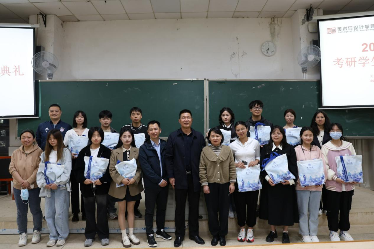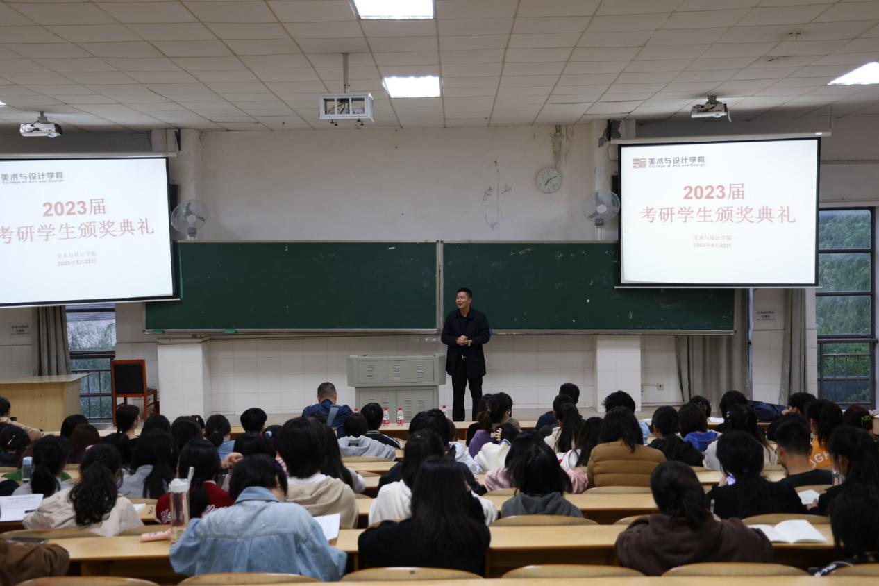 5月22日晚7点,伟的国际1946bv在玉衡南201举行2023届考研学生颁奖典礼暨考研经验分享会。学院党委书记杨虎智、副院长(主持工作)蔡惠萌、党委副书记刘峰、学工办全体老师和近200名美院学生参加本次活动,由院学工办主任武湘梅主持。
