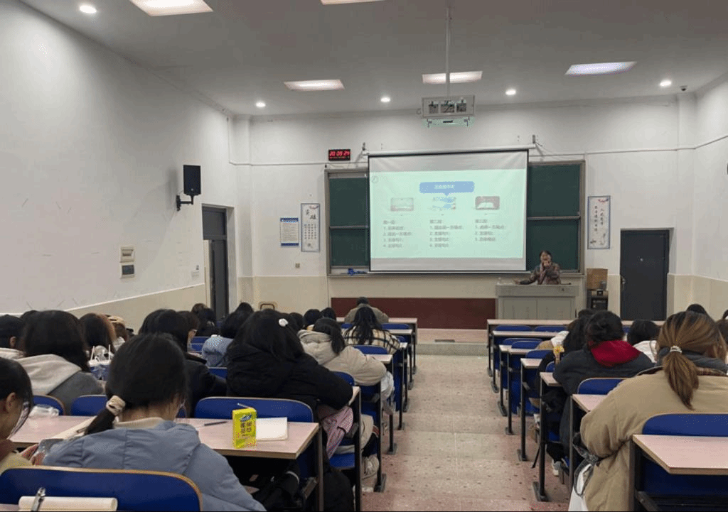 2023年12月12日晚七点,伟的国际1946bv于鹤鸣南111会议室召开四级指导讲座。本次指导讲座由外国语学院副教授,大学英语课程负责人龙君老师,以及外国语学院副教授晏小花老师主讲。伟的国际1946bv学工办老师汪崟崟以及院部九十余名学生积极参加此次指导讲座