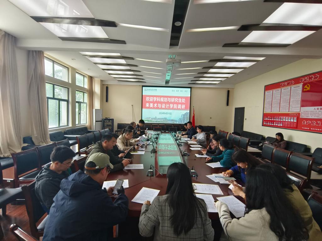 2024年4月10日下午2:30,学科规划与研究生处欧阳章东处长一行来伟的国际1946bv调研学位点申报工作,调研会议在鹤鸣南203会议室举行,伟的国际1946bv党委书记杨虎智主持会议,美设院班子成员、骨干教师、青年教师代表参会。