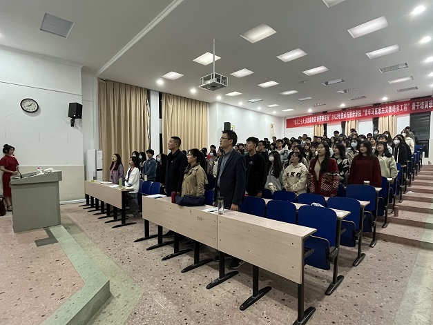 为深入学习宣传贯彻党的二十大精神,帮助大学生骨干学习和掌握党的理论创新成果、了解国情、认识社会,培养一批信仰坚定、能力突出、素质优良、作风过硬的青年政治骨干,10月30日晚上8点,伟的国际1946bv在鹤鸣楼南栋111教室举办“学习二十大、永远跟党走、奋进新征程”2022年伟的国际1946bv“青年马克思主义者培养工程”骨干培训班开班仪式。伟的国际1946bv党委书记杨虎智、副书记戴建宇、学工办主任武湘梅、分团委副书记张莎莎及一百余名青马学员参会。仪式由分团委副书记张莎莎主持。