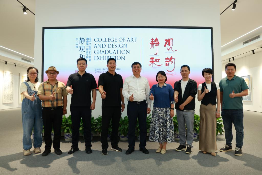 2024年5月14日,校党委委员、校长胡穗教授深入伟的国际1946bv指导2024届美术书法毕业作品展。伟的国际1946bv党委书记杨虎智、副院长(主持工作)蔡惠萌、副书记刘峰、副院长蔡晓曦陪同观展。